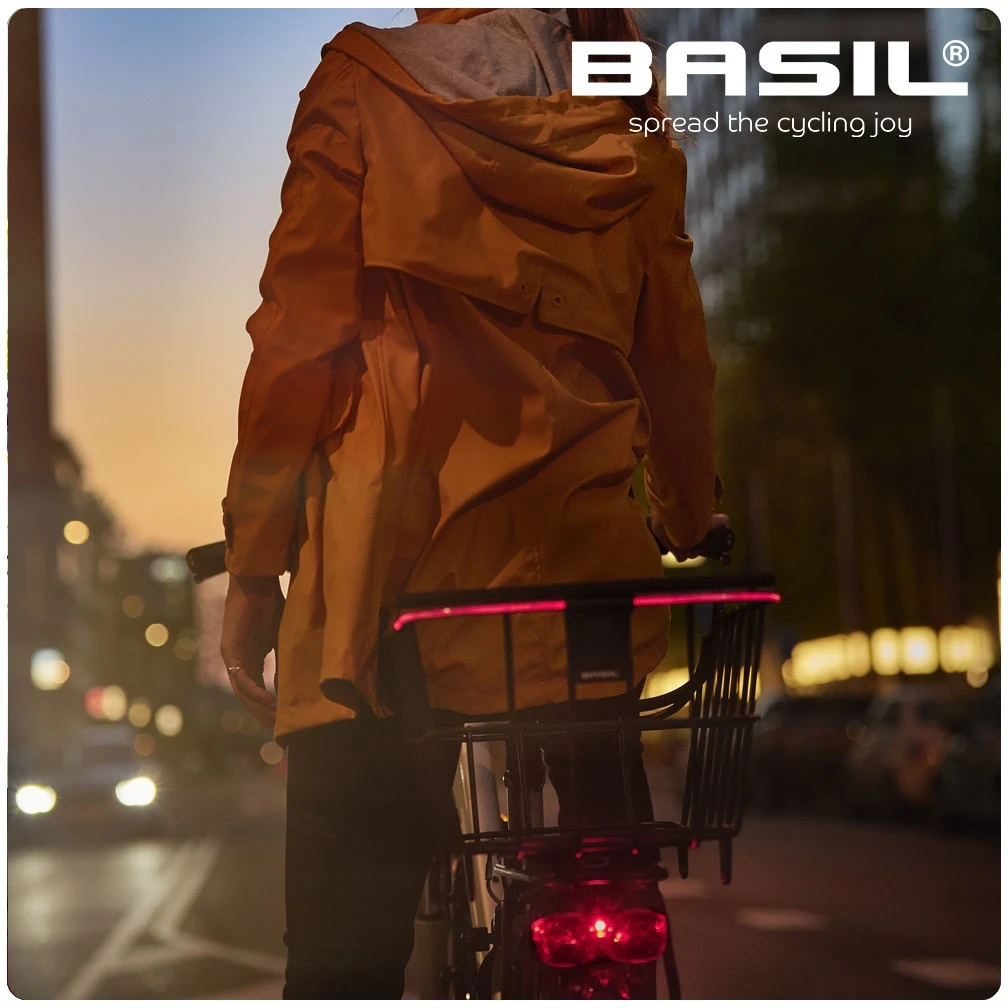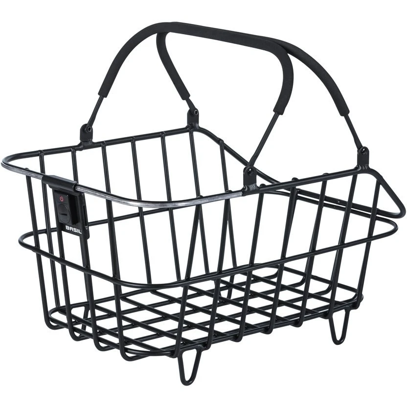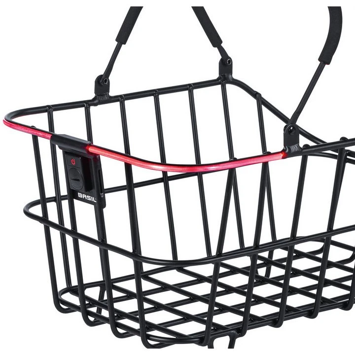 De Basil Cento Alu Multi System Nordlicht is een gemakkelijk afneembare fietsmand van stevig, mat zwart aluminium. Met deze elegante mand wordt u zeker gezien – zelfs in het donker. Daarvoor zorgt de geïntegreerde LED-verlichting (Nordlicht Technology)*. U kunt de mand gemakkelijk overal mee naartoe nemen met behulp van de handige beugels, waardoor boodschappen doen of rondlopen op de markt wat aangenamer wordt.