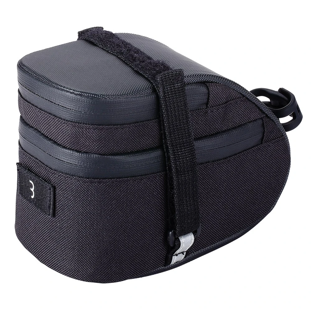 Klittenband, voor een veilige bevestiging. Rubberen bevestiging aan de zadelpen voor extra stabiliteit en veiligheid.