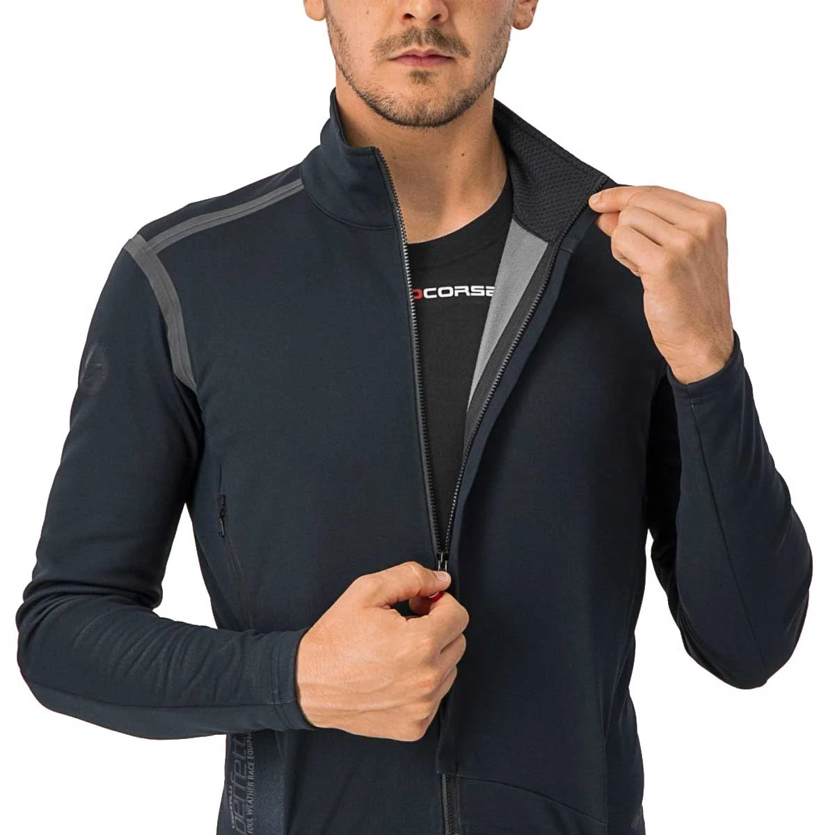 exclusieve, waterdichte Castelli GORE-TEX fabric INFINIUM™ WINDSTOPPER® 205Warmer stof aan de voorkant