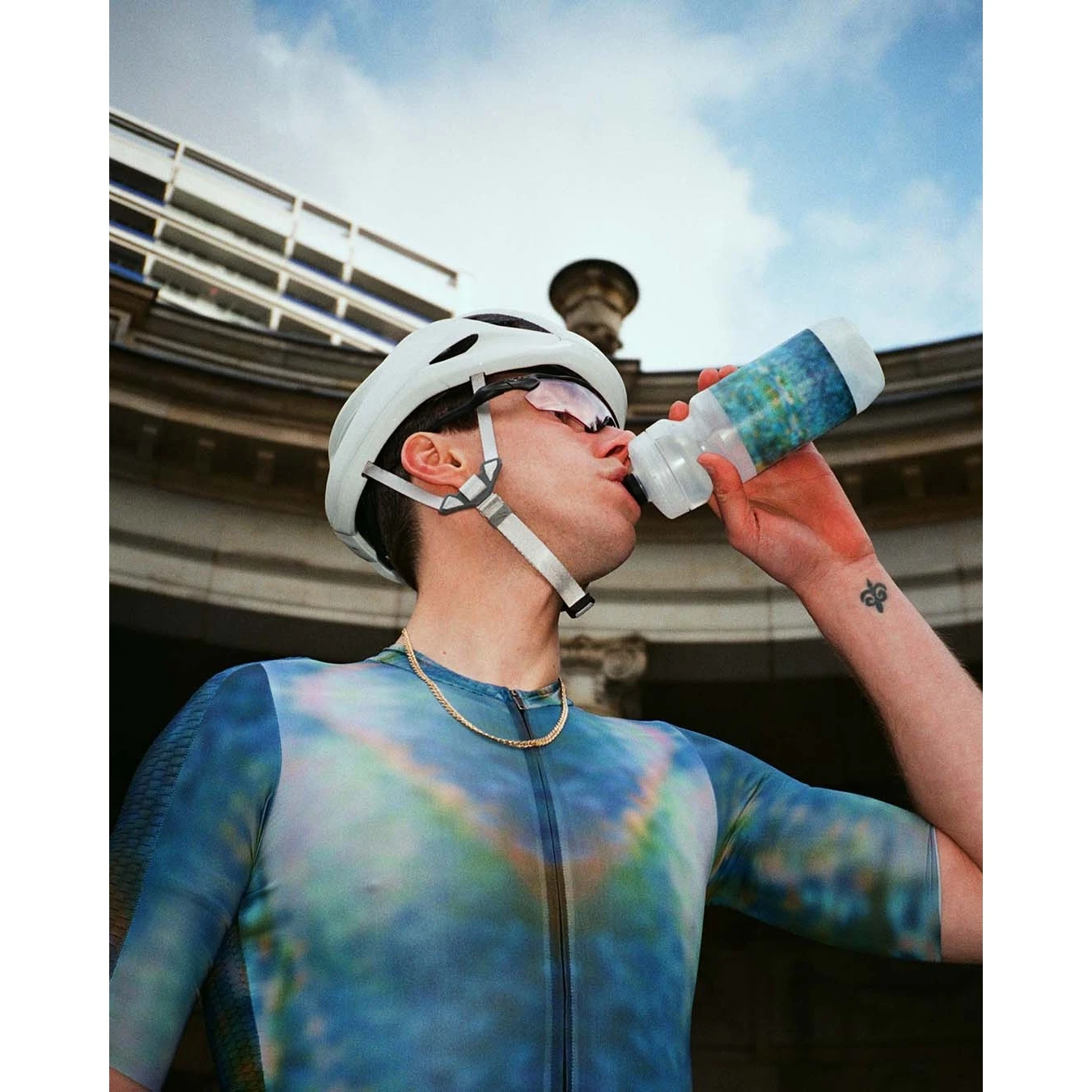 FINGERSCROSSED en BUREAU BORSCHE presenteren een gezamenlijke capsulecollectie bestaande uit vijf stijlen – bedrukt op sokken en bidons. Een lange vriendschap die leidt tot een kleurrijke en luide interpretatie van onze fietsbenodigdheden.
