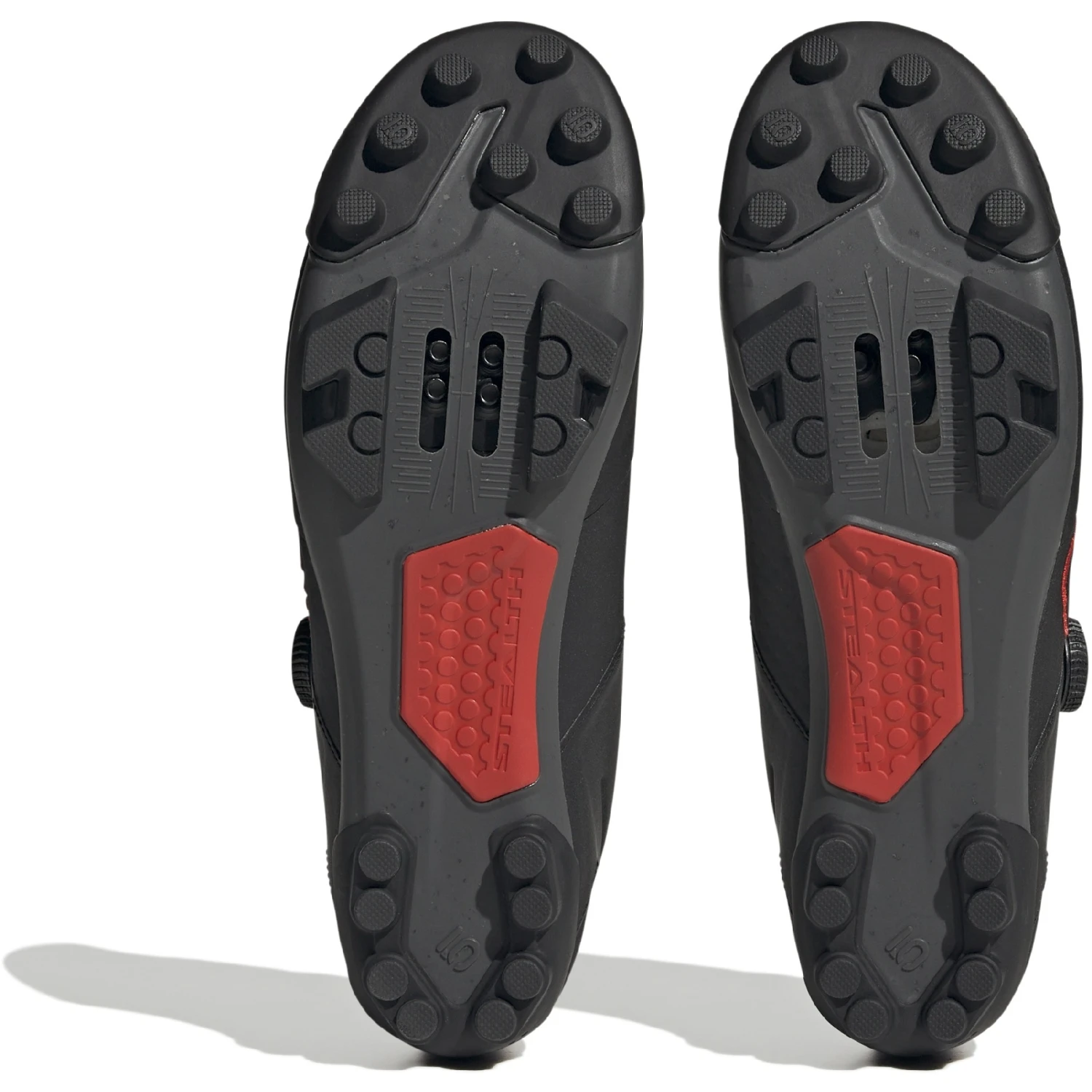Of je nu trail of cross-country rijdt, deze adidas Five Ten mountainbikeschoenen zijn gemaakt voor trailverkenning en snelle afdalingen. Ze hebben een stijve tussenzool en schoenplaatcompatibiliteit voor efficiënt trappen. Met het BOA® Fit System kun je de pasvorm en vetersluiting van de schoen nauwkeurig aanpassen. Een versterkte toebox beschermt tegen schokken. Slijtvaste overlays zorgen voor grote duurzaamheid. Een Stealth Marathon inzetstuk net achter de schoenplaathouder zorgt voor extra grip als de schoen niet vastzit. Het bovenwerk is gemaakt van diverse gerecyclede materialen en bestaat voor minstens 50% uit gerecycled materiaal. Dit product is slechts een van de vele oplossingen om plastic afval te voorkomen.