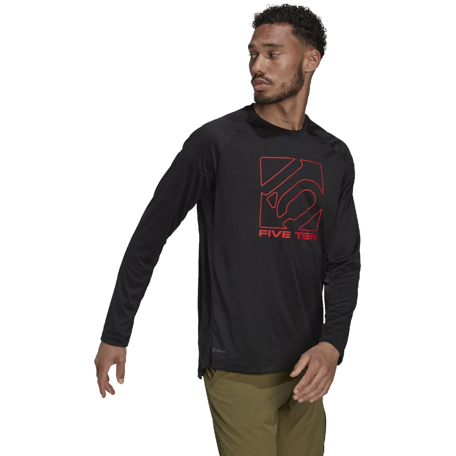 Je bent in volle vaart op de paden. Met deze Five Ten mountainbike jersey zit je altijd comfortabel dankzij het lichtgewicht ontwerp en de vochtabsorberende adidas AEROREADY technologie. De normale snit biedt ook genoeg ruimte om elleboogbeschermers te dragen.