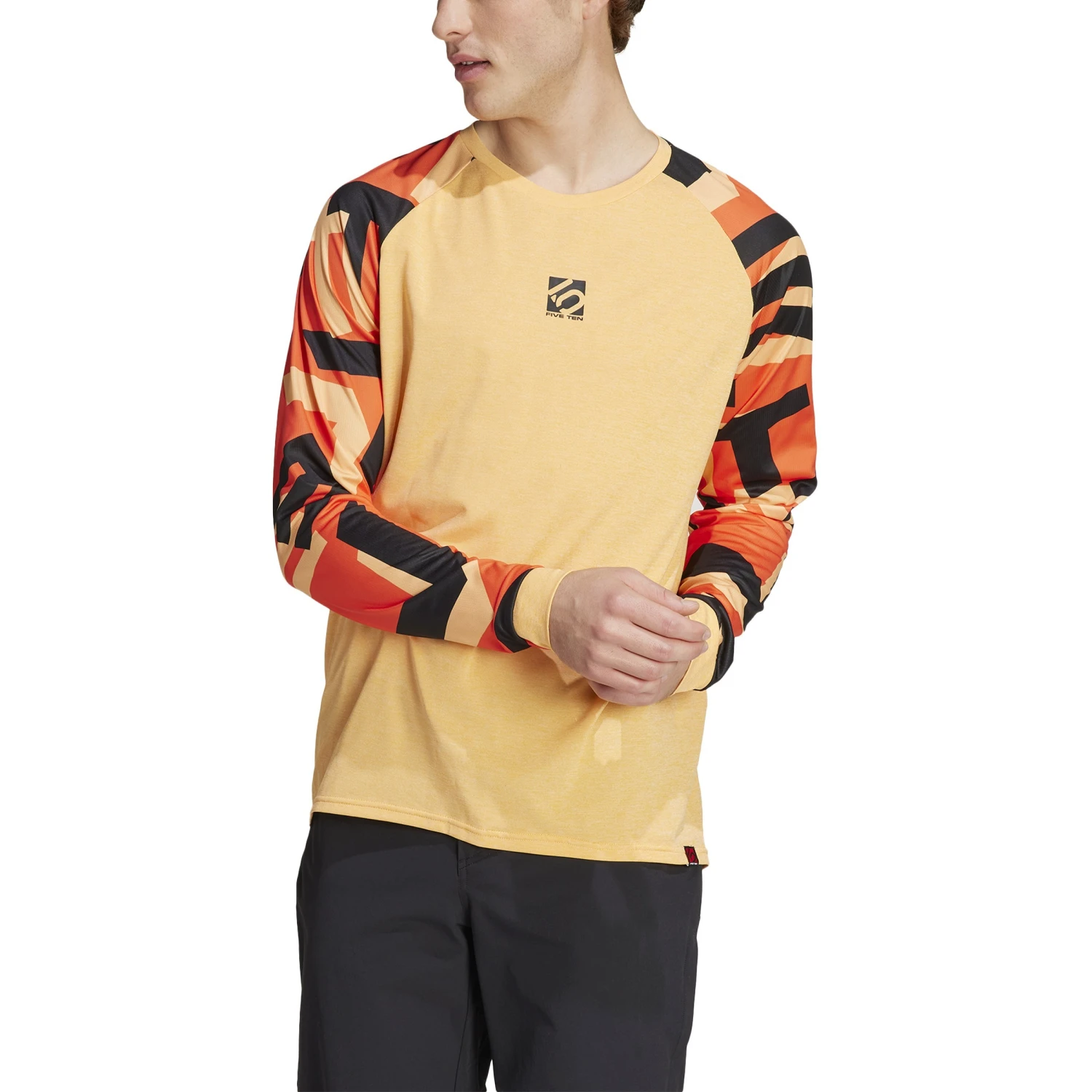 Bij mountainbiken draait alles om de juiste uitrusting. Deze lichtgewicht adidas longsleeve beschermt je tegen zon, vuil en viezigheid. De Five Ten print weerspiegelt je energie. En de vochtabsorberende AEROREADY-technologie garandeert een droog gevoel.
