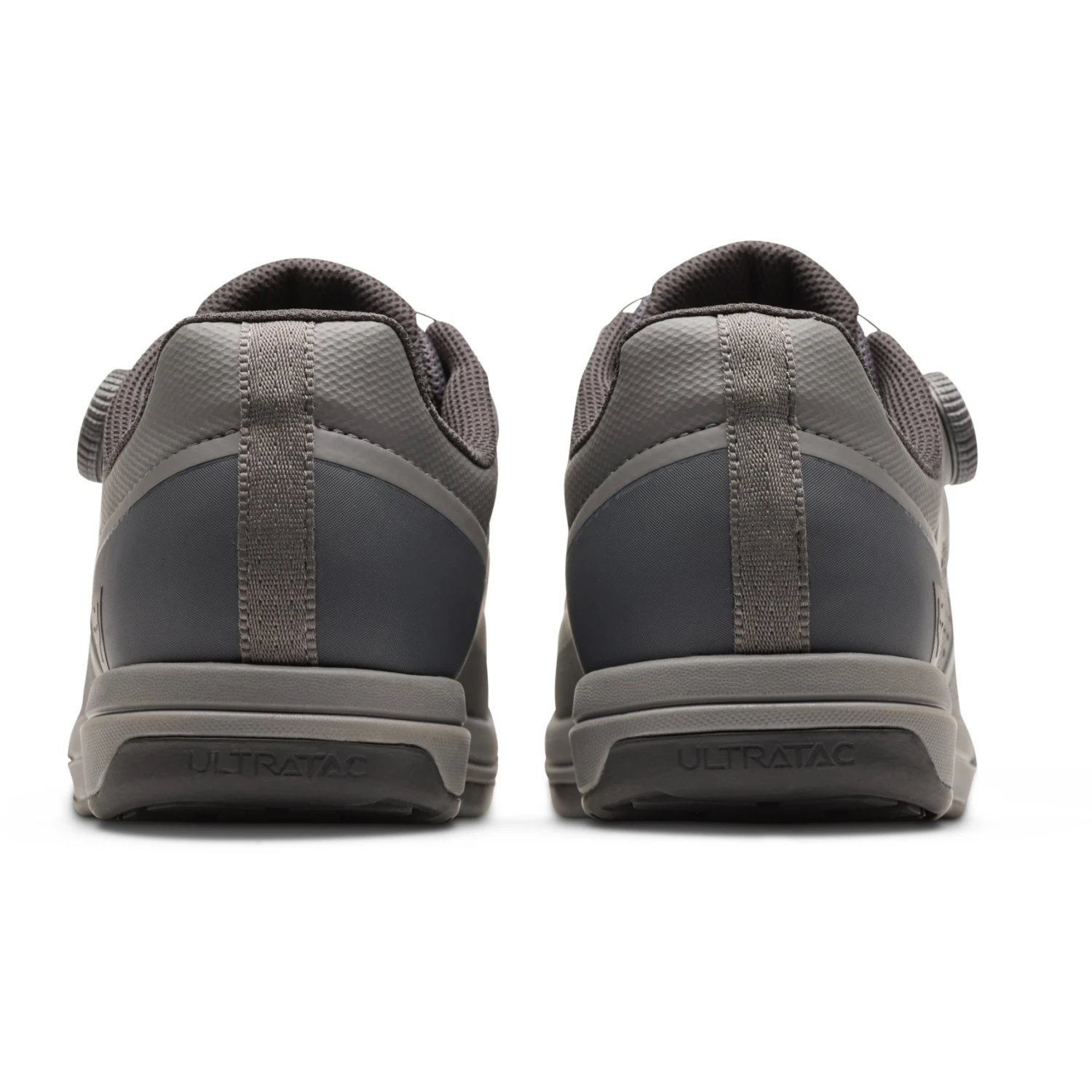 Het dubbele BOA® Li2 systeem dat in deze trail-specifieke schoenen is geïntegreerd, brengt meer kracht op de pedalen en maakt de pasvorm vrijwel perfect. De Union fietsschoen heeft robuuste eigenschappen, zoals de voorgevormde veiligheidsneus die beschermt tegen steenslag, en kan de ontberingen van het parcours met gemak aan. Met een lichtgewicht en precieze pasvorm, het lage profiel en een speciaal ontworpen tussenzool voor meer grip en gevoel, bieden deze schoenen meer comfort tijdens het shredden. De krachtoverbrenging naar het pedaal wordt geoptimaliseerd door de voorgevormde interne verstevigingsplaat, maar stijfheid gaat niet ten koste van het comfort buiten de fiets. Dus als je ooit moet afstappen om een omgevallen boom te ontwijken, zit je aan de veilige kant. De Ultratac™ rubberen composietzool heeft een uitgekiend profiel voor superieure grip en duurzaamheid, terwijl het 2-bout schoenplaatjessysteem compatibel is met alle grote pedaalfabrikanten. Met hun veelzijdige en ingetogen stijl zijn de Union schoenen geboren voor de trail en maken ze moeiteloos de overgang van singletrack naar bier na de rit.