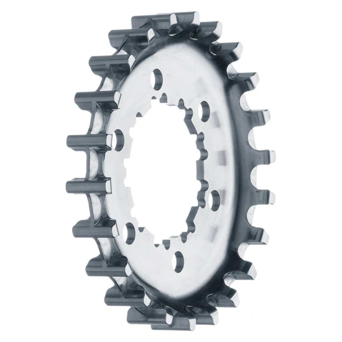 De Gates riemschijf is gemaakt van duurzaam roestvrij staal en zorgt voor maximale betrouwbaarheid. Het speciale tandprofiel zorgt bovendien voor een probleemloze werking, zelfs in de meest ongunstige omstandigheden zoals sneeuw of modder. CDX-componenten zijn de sterkste en duurzaamste componenten van Gates en zijn daarom ook bij uitstek geschikt voor gebruik op E-MTBs met middenmotoren en hoge koppels.