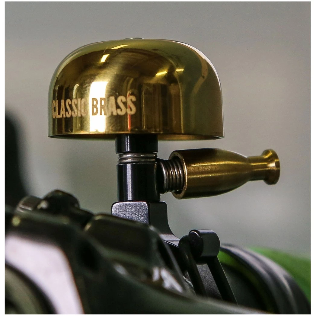 Compacte, klassieke vorm van moderne, hoogwaardige materialen. De bel van de zelf is gemaakt van hoog gepolijst messing, gemonteerd op een bewerkte aluminium basis. De kleine koperen bel geeft een scherpe, indrukwekkend luide beltoon die anderen op uw aanwezigheid attendeert. Een eenvoudige O-ring bevestigt de fietsbel aan verschillende stuurdiameters en -vormen, zodat hij netjes in elke fiets past.