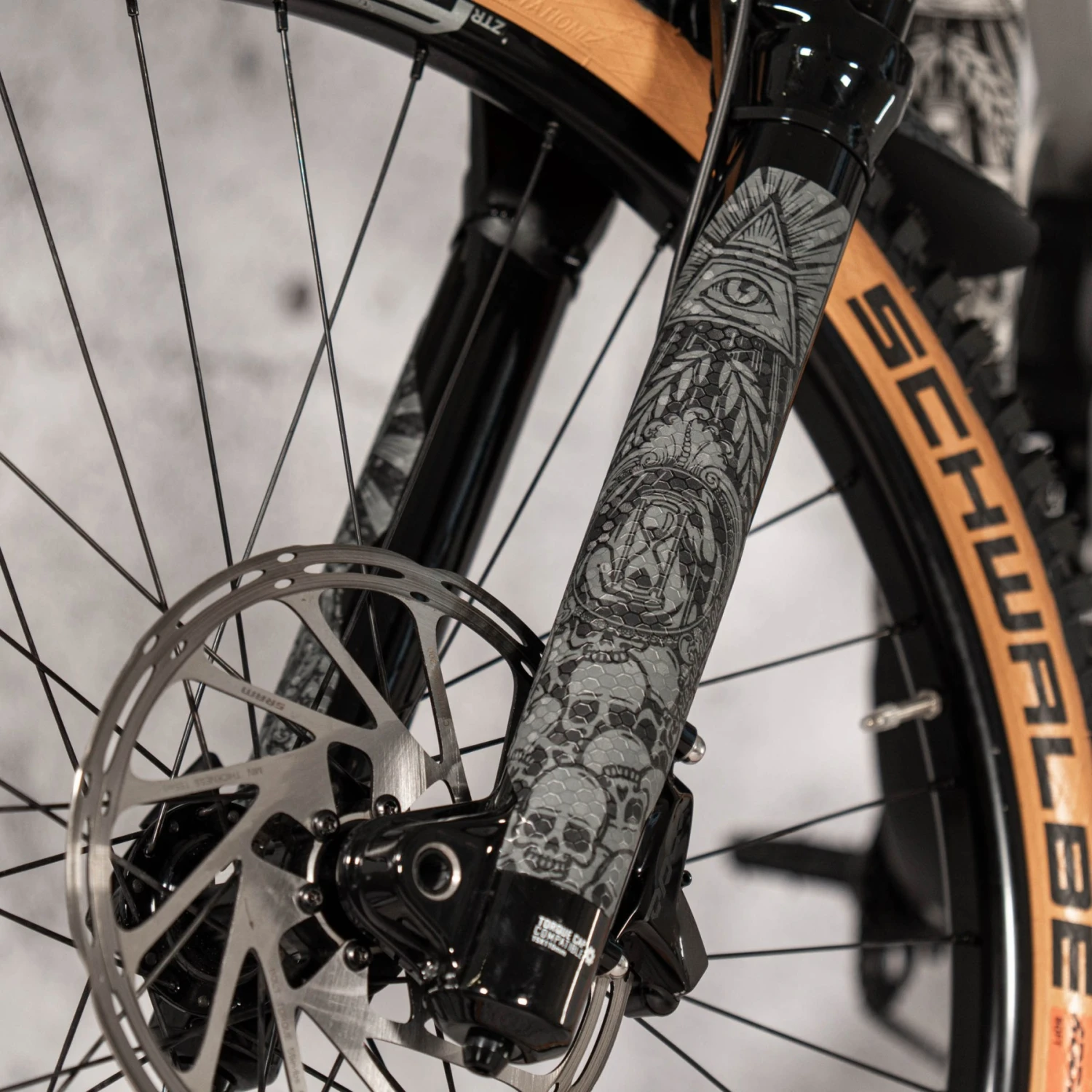 Dankzij zijn speciale vorm kan hij worden toegepast op zowel stijve als geveerde vorken en is hij bovendien zeer resistent dankzij het innovatieve honingraatmateriaal.