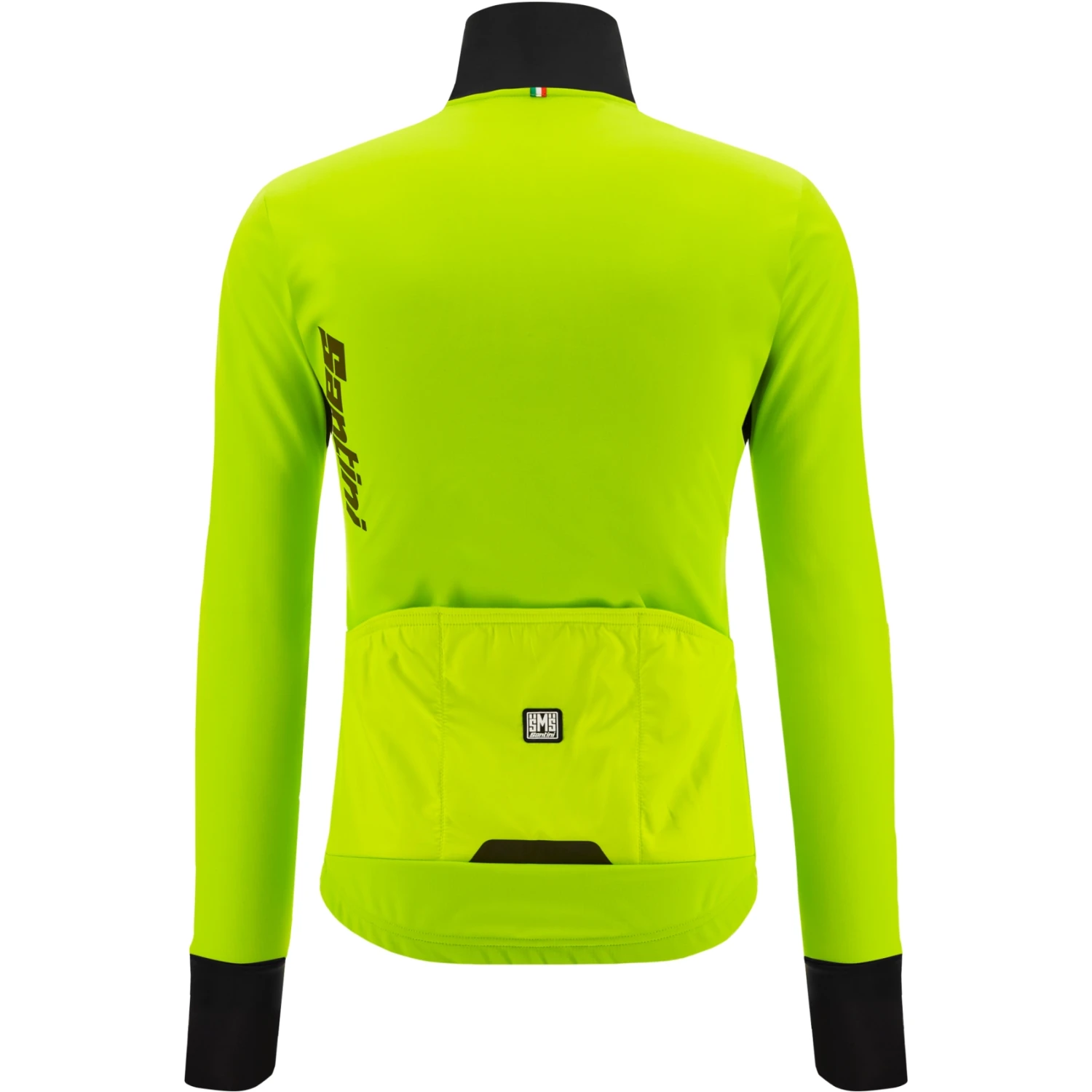 Gemaakt van POLARTEC® Powershield, een microporeus softshell membraan met vier richtingen dat de lichaamswarmte tijdens het fietsen optimaal kan afvoeren en tegelijkertijd uitstekende bescherming biedt tegen de elementen. De stof is ontwikkeld met binnen- en buitenstoffen die in exclusieve Santini-kleuren zijn geverfd.