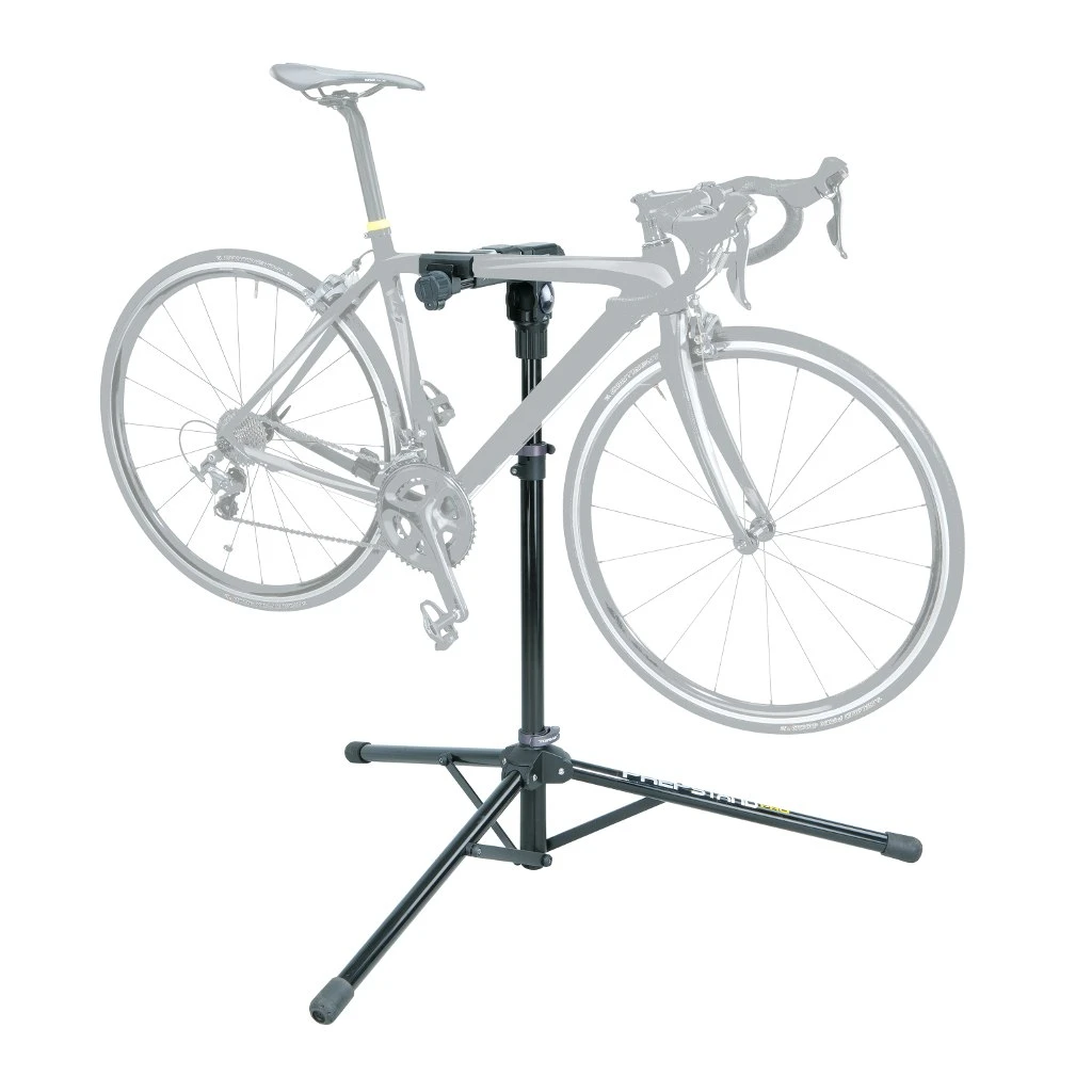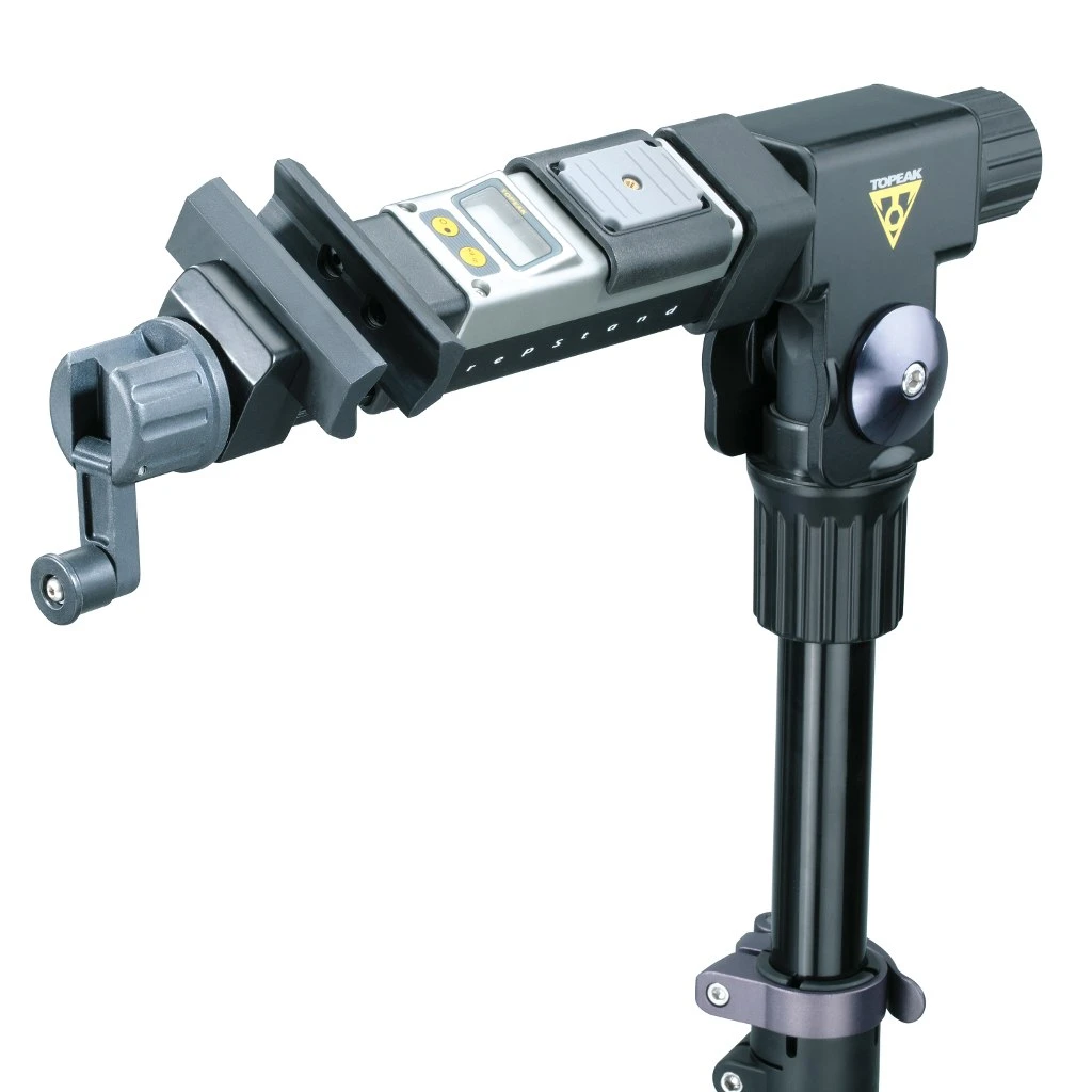 Professionele montagestandaard met ingebouwde digitale weegschaal. Stevige driepootbasis die kan worden ingeklapt voor transport. Uitklapbaar crankmechanisme om de fiets gemakkelijk en nauwkeurig vast te klemmen. Ideaal voor de werkplaats en onderweg