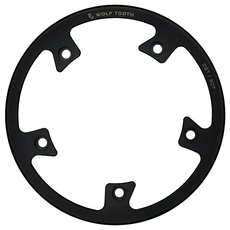 Met de Wolftooth Bashguard Ring kunnen alle cranks met Wolftooth Direct Mount kettingbladen van roestvrij staal ook worden uitgerust met een bijpassende bashguard. Beschikbaar voor 24-26 en 28-30 tanden.