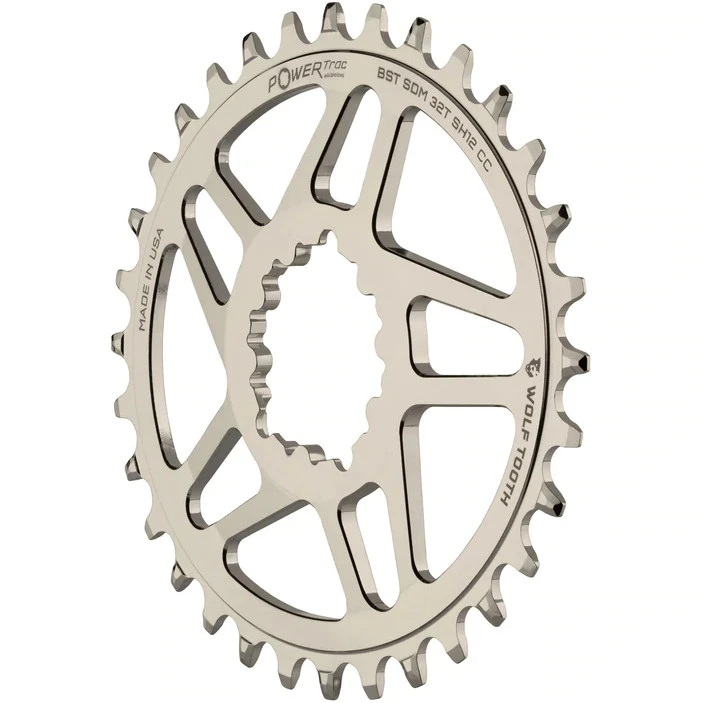 Het Wolf Tooth Elliptical Direct Mount Boost kettingblad met een nikkel coating is speciaal ontworpen om er goed uit te zien op het Cane Creek eeWings titanium crankstel. Het werkt echter ook uitstekend op alle SRAM 3-gaats Direct Mount cranksets.